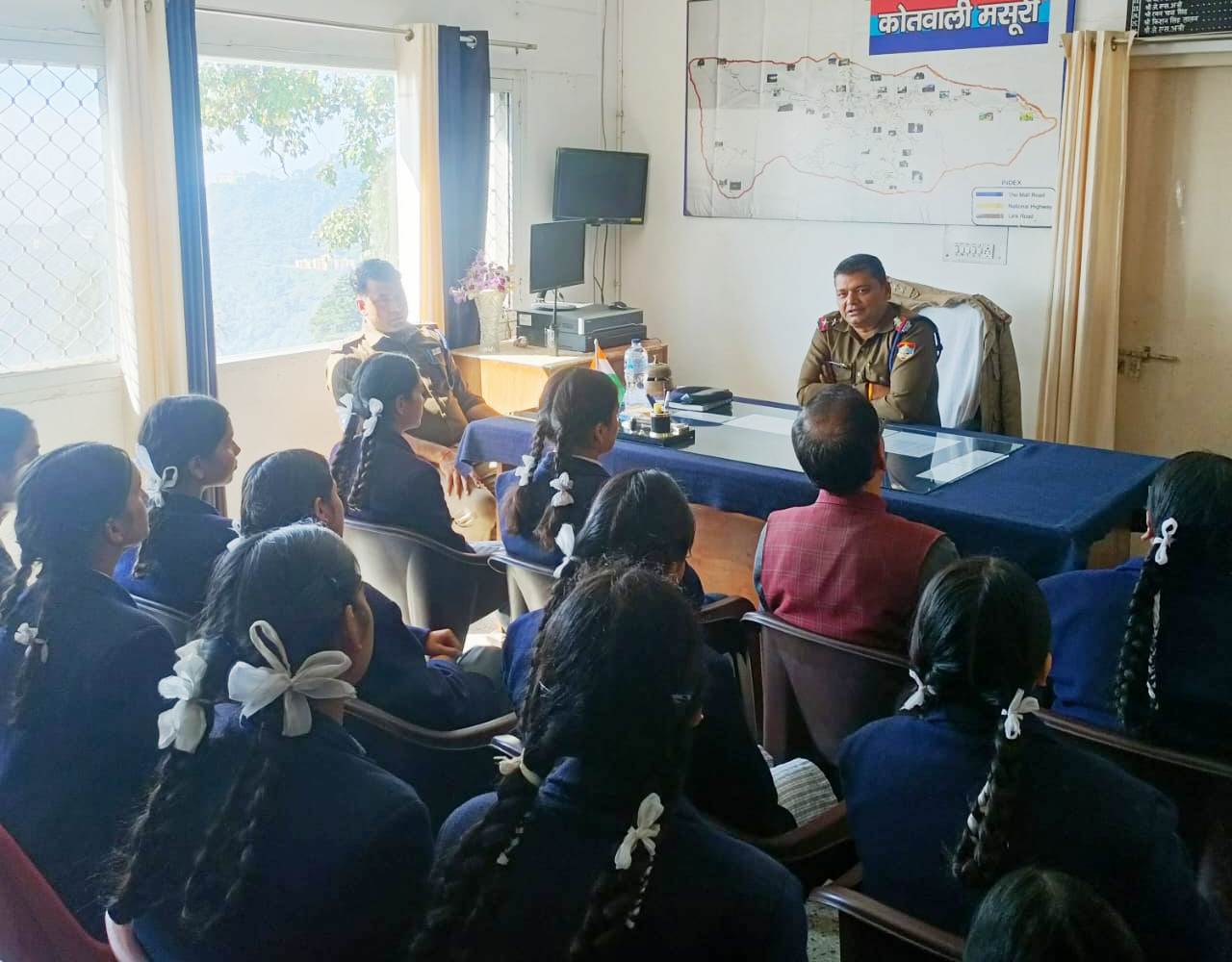 मसूरी : सरदार वल्लभभाई पटेल की 150 वीं जयंती के अवसर पर महात्मा योगेश्वर सरस्वती शिशु/विद्या मंदिर इंटर कालेज मसूरी के लगभग 40 छात्र-छात्राओं एवं अध्यापकगणों ने कोतवाली मसूरी का भ्रमण किया गया। व पुलिस की कार्यप्रणाली की जानकारी ली।