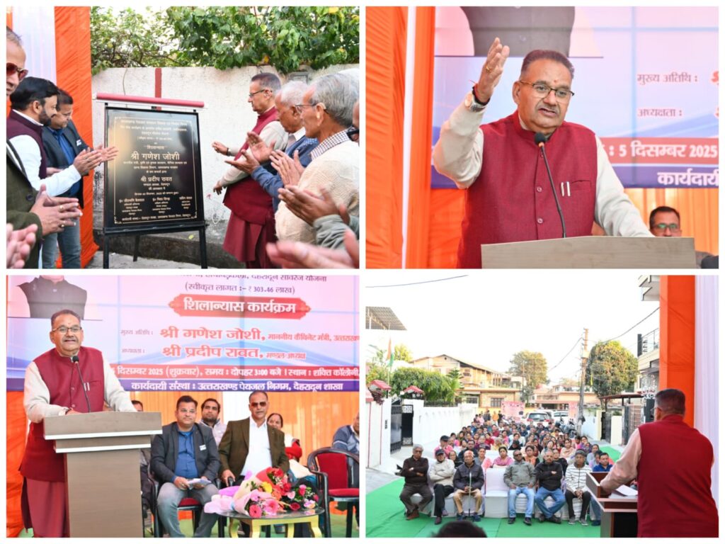 देहरादून : कैबिनेट मंत्री गणेश जोशी ने आज मसूरी विधानसभा क्षेत्र के हाथीबड़कला़ स्थित शक्ति कॉलोनी में ₹303.46 लाख की लागत से स्वीकृत सीवरेज योजना का विधिवत शिलान्यास किया। इस परियोजना के पूरा होने से क्षेत्र के 1300 से अधिक परिवारों को सीवरेज समस्या से राहत मिलेगी।