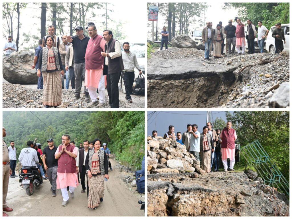 मसूरी : कैबिनेट मंत्री गणेश जोशी ने आज अतिवृष्टि से प्रभावित मसूरी झड़ीपानी मार्ग का निरीक्षण किया। इस दौरान उन्होंने झड़ीपानी स्थित ट्रैकिंग रूट का भी जायजा लिया, जहां भू-धंसाव के कारण खतरा बना हुआ है। कैबिनेट मंत्री गणेश जोशी ने मौके पर सचिव आपदा को निर्देश दिए कि झड़ीपानी ट्रैकिंग रूट का शीघ्र सर्वे किया जाए, ताकि प्रभावित क्षेत्र की सुरक्षा सुनिश्चित की जा सके। उन्होंने देहरादून-मसूरी मार्ग में विभिन्न स्थानों पर हुए नुकसान का भी निरीक्षण किया और संबंधित अधिकारियों को राहत एवं मरम्मत कार्य तेजी से पूरा करने के निर्देश दिए।