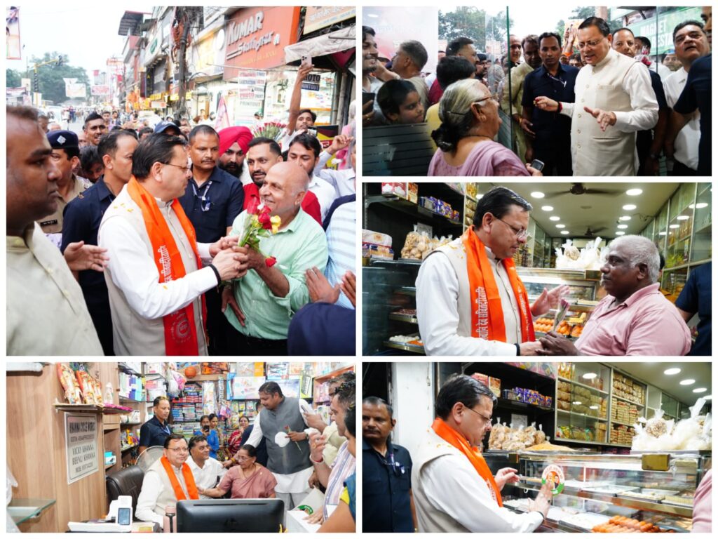 मुख्यमंत्री धामी ने सोमवार शाम देहरादून के प्रेमनगर स्थानीय बाज़ार पहुंचकर व्यापारियों से मुलाकात कर नए जी.एस.टी स्लैब के बारे में फीडबैक लिया एवं व्यापारियों से आम जन को भी घटे हुए जी.एस.टी के बारे में जानकारी देने का आग्रह किया।