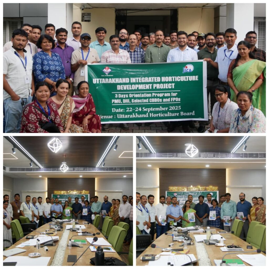 देहरादून : औद्यानिकी को बढ़ावा देने की दिशा में जापान इंटरनेशनल कोआपरेशन एजेंसी (जाइका) से प्रायोजित उत्तराखंड एकीकृत उद्यानिक विकास परिषद के अंतर्गत उद्यान एवं खाद्य प्रसंस्करण विभाग द्वारा उत्तराखंड उद्यानिकी परिषद सर्किट हाउस देहरादून में तीन दिवसीय कार्यशाला आयोजित की गई। 22 से 24 सितंबर तक चली इस कार्यशाला में परियोजना को क्षेत्रीय स्तर पर प्रभावी रूप से प्रारंभ करने की तैयारी मजबूत बनाने पर जोर दिया गया।