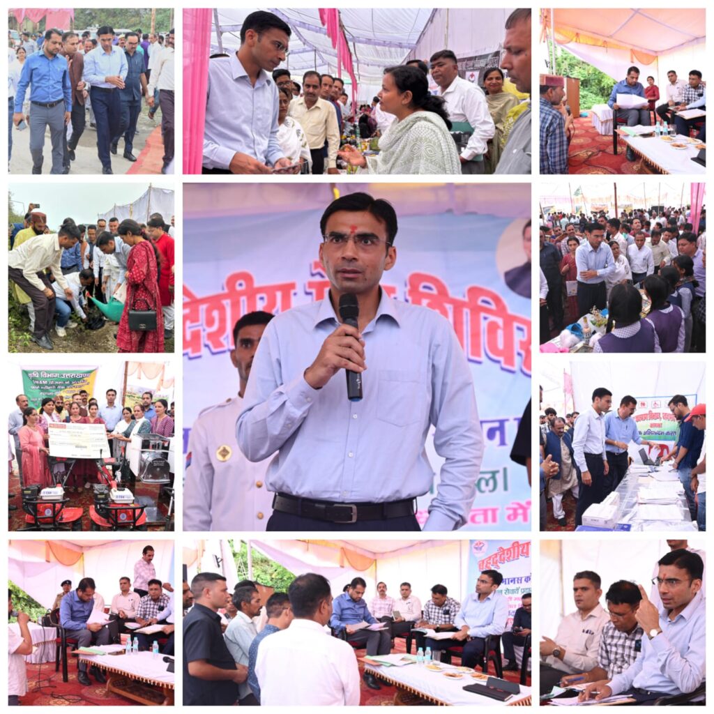 जिलाधिकारी ने शिविर में स्टालों का निरीक्षण करते हुए कृषि विभाग के माध्यम से कृषि यंत्रीकरण योजना के तहत एनआरएलएम समूह ‘नई दिशा महिला सेल्फ हेल्प ग्रुप’ को 05 लाख की फार्म मशीनरी बैंक और 04 लाख सब्सिडी चैक प्रदान किया। सहकारिता विभाग के माध्यम से शिव कृषक स्वंय सहायत समूह को 05 लाख का चेक और पशुपालक संदीप चौहान को 1.60 लाख का चेक प्रदान किया। वहीँ पोषण माह के अंतर्गत बाल विकास एवं महिला सशक्तिकरण विभाग के माध्यम से 03 गोद भराई, 03 अन्ना प्रासन, कुपोषित 03 बच्चों को पोषण किट, 10 किशोरी पोषण एवं स्वच्छता किट, 05 महालक्ष्मी किट का वितरण किया। वही समाज कल्याण विभाग के माध्यम से ‘वयोश्री योजना’ के तहत 62 वरिष्ठ नागरिकों को सहायक उपकरण और 02 दिव्यांग जनों को व्हीलचियर वितरित किए।